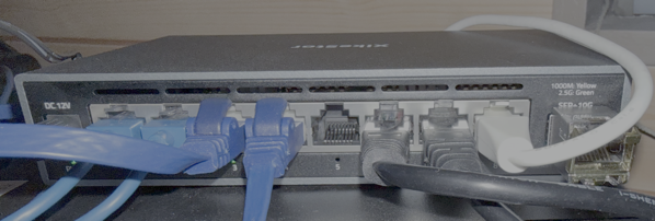 さて、よくよく家にある機材を調べてみたら。。。1Gbpsで使っていた2.5Gbps NICのマシンが結構あって、刺してみたらもうポートが埋まってしまった。空いているところは、そのうち埋まる予定。