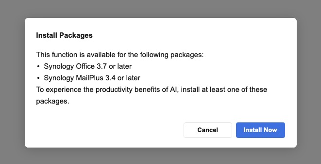 AIアプリは、LLMと連携ができるっぽいが、中身は、Copilotもどきか?NASにオフィス製品を入れる気はないので、ここで中断。
