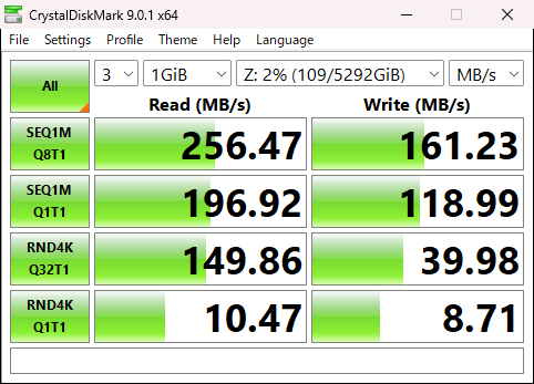 やろうやろうと思っていて、やっていなかった。正直言って、エンタープライズストレージではなく、LinuxパソコンベースのNASなので、SATAが最大6Gbpsで、NICが1Gbpsあるいは2.5Gbpsで、調べることはなくHDDのスピードかNICのスピードで頭打ちになると思っていた。