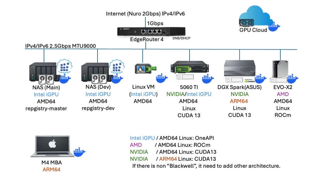 となる。DGX Sparkなんて、ARM64なので、AMD64の資産が一切使えない。幸い、手元のNVIDIAがBlackwellだけだったから良かったものの、これにAdaとかAmpere世代が混じっていたらカオスだった。別にIntel iGPUはパフォーマンスがでないのは百も承知なのでいいけど。(どうやらIntel iGPUが悪いのではなく、iGPU自体、dGPUに大量に入っている回路が少しししか入っていない)