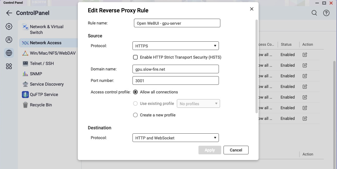 NASに証明書をいれてある環境のReverse Proxyを使って、Open WebUIを使う方法